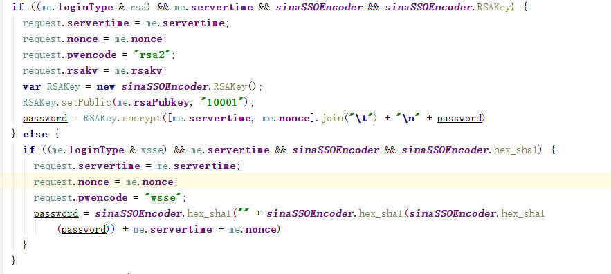关于密码的加密代码中显示有两种方式,判断的标准是pwencode的值。我们登录时一般为rsa2所以选用第一种加密方式。至于第二种加密方式是否适用大家可以去尝试尝试。