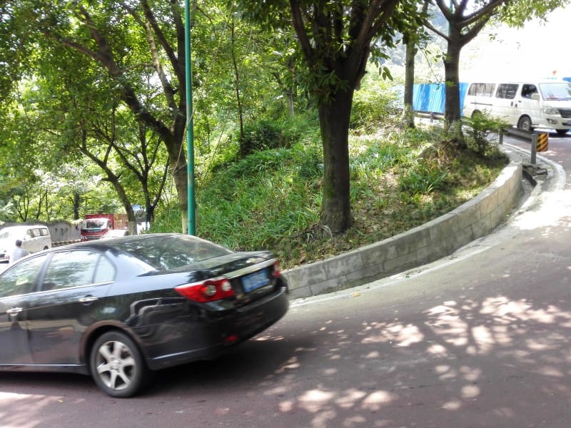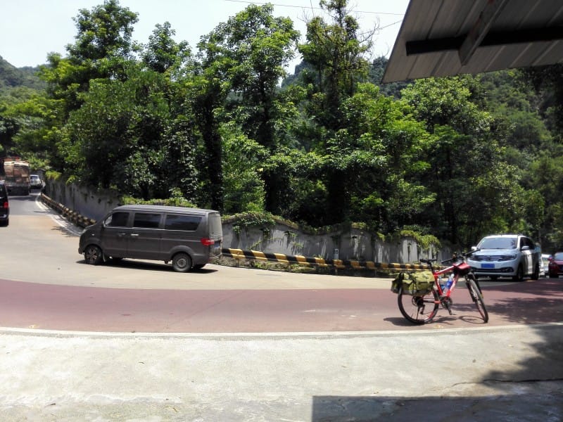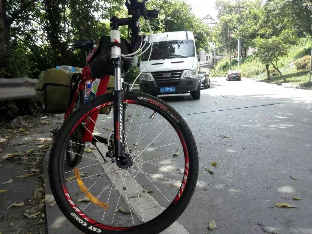 翻山的过程我简单用这几个词概括烈日炎炎,汗如雨下,孤苦伶仃,摇摇欲坠。这其中真正的滋味是无法言表的。上山的时候需要推,下山也要推。下山的坡比昨天更陡弯度更大,中间有一段路还坏了一半,车流量也大,一路心惊胆战的连推带骑速度不超过20km/h的终于到达了磁器口。