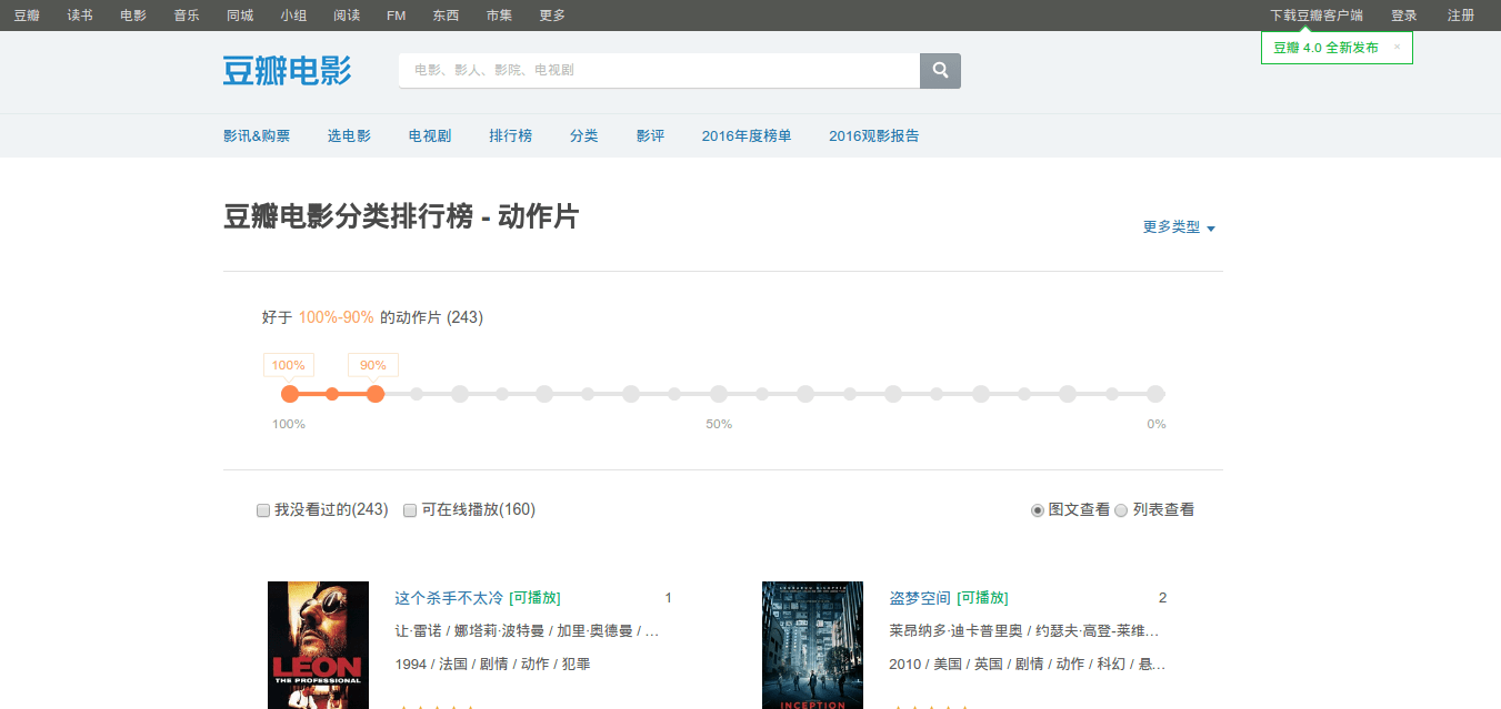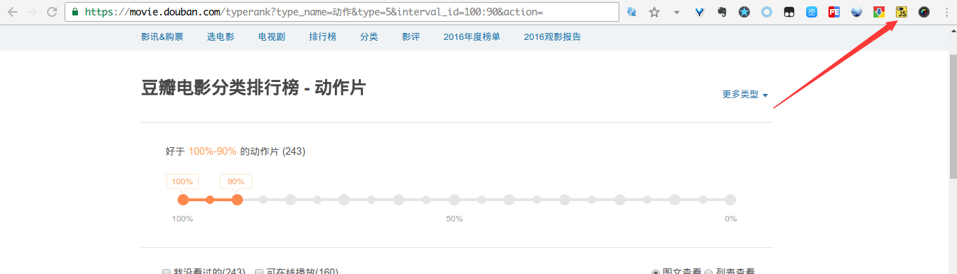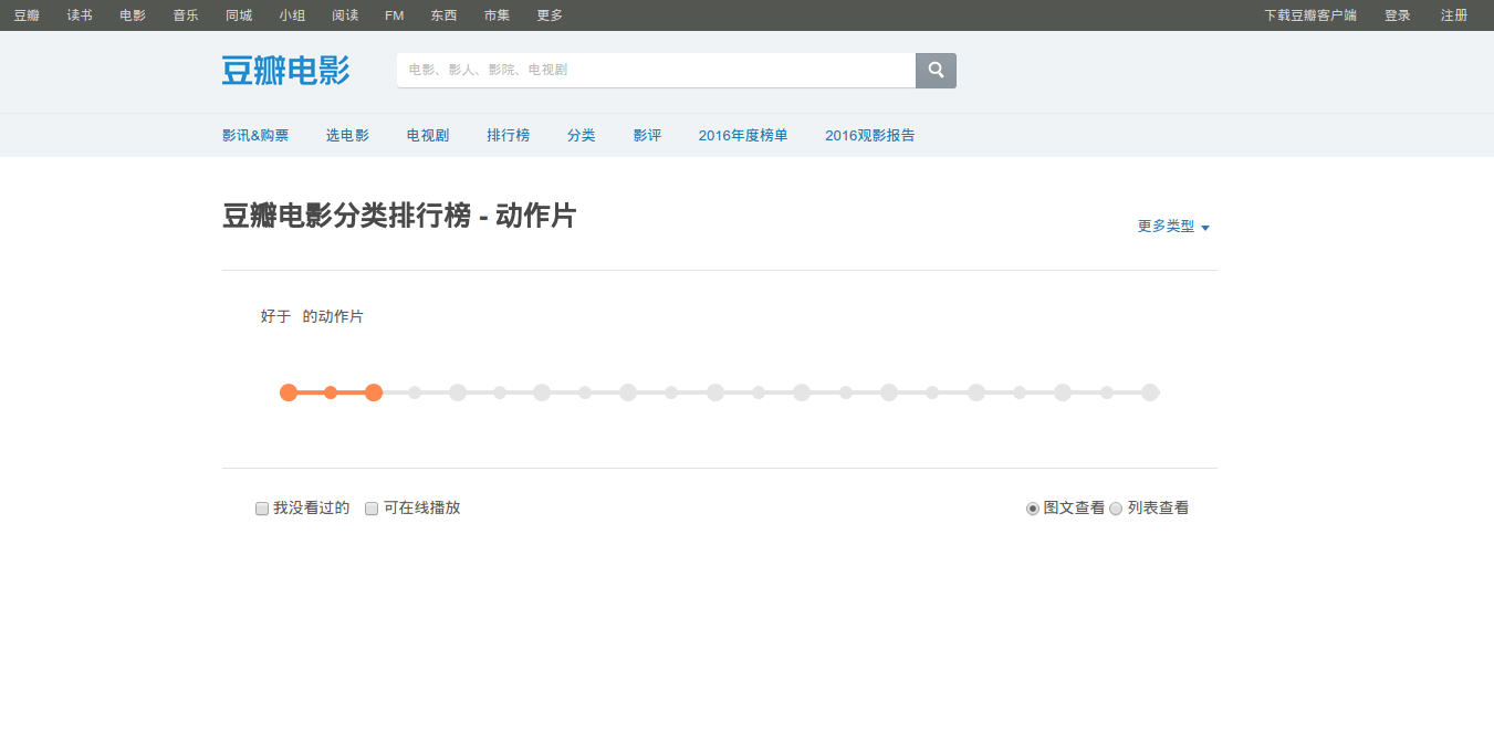 首先我们打开豆瓣电影分类排行榜 - 动作片栏目。