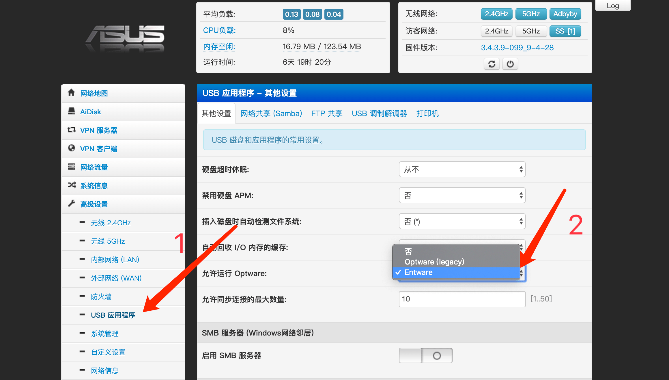 将格式化后的 U 盘插入路由器,并进入路由器管理页面:192.168.123.1
